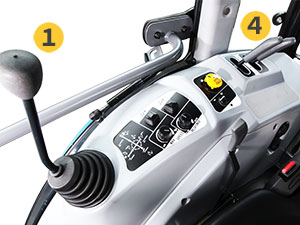 - Stufenloses Hydrostatgetriebe mit Servo-Pedal-Bedienung
